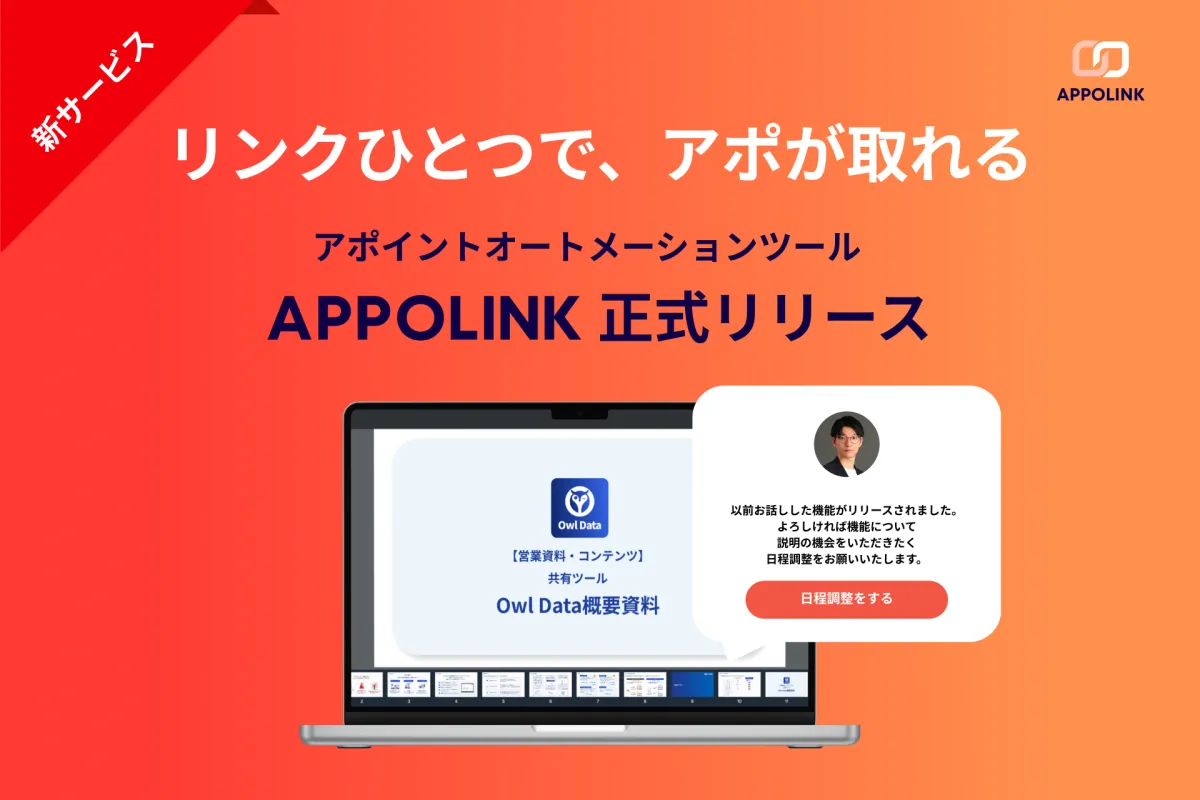 株式会社Owl Dataが提供する新しいアポイントメント自動化ツール「APPOLINK」は、シンプルなリンクを介してアポイントを取得する革命的なサービスです。企業が直面しているアポイント獲得の非効率さを解消し、時間と労力を節約できるメリットがあります。