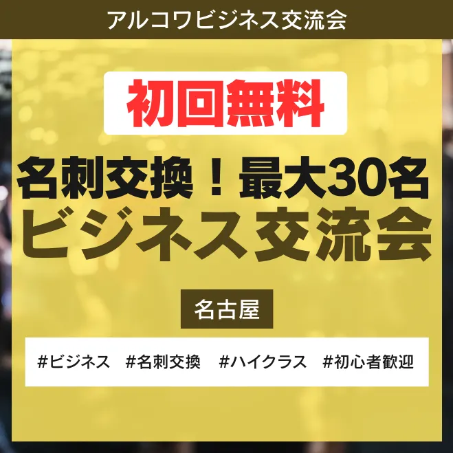名古屋市内で予定されているアルコワビジネス交流会は、スキルアップやビジネスチャンスを得る良い機会です。初回参加は無料で、多くの方が気軽に参加いただけますので、ぜひこの機会に人脈を広げてみてはいかがでしょうか。興味のある方はお申し込みをお忘れなく。