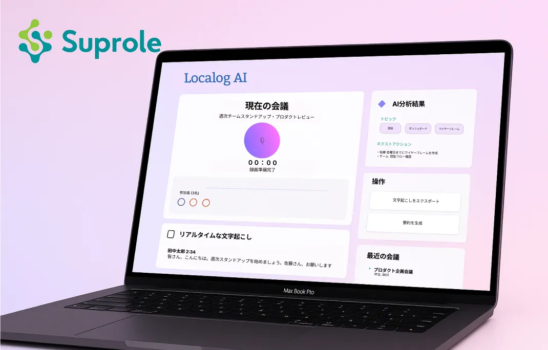 株式会社Suproleが新たにリリースした「Localog AI」は、クラウドが利用できない環境でも手軽に使用できる超軽量のオンプレミスソフトウェアです。このAI議事録ツールは、録音・文字起こし・要約をすべてオフラインで行うことができ、特に金融機関や自治体など情報漏えいリスクに敏感な組織に最適です。