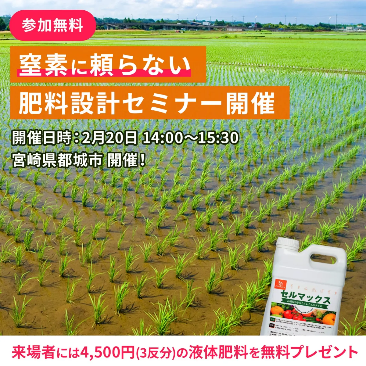 このセミナーは、水稲栽培の課題を解決し、次の収穫に向けた具体的な対策を一緒に考える貴重な機会です。無料相談会や肥料プレゼントも行われるため、ぜひ奮ってご参加ください!