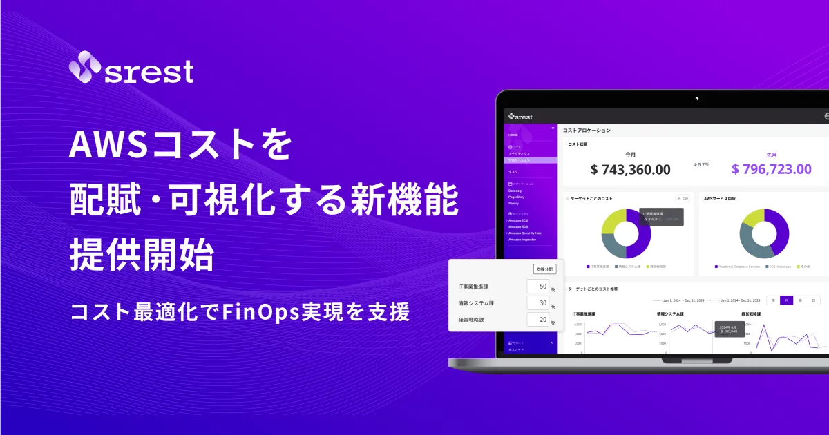 株式会社メタップスホールディングスが提供するAWS横断監視ツール「srest」は、2025年1月23日(木)から新機能「コストアロケーション機能」の提供を開始します。この新機能により、企業はクラウド利用コストを事業部やシステム環境に応じて配分することができ、視覚的にコスト状況を把握できるようになります。