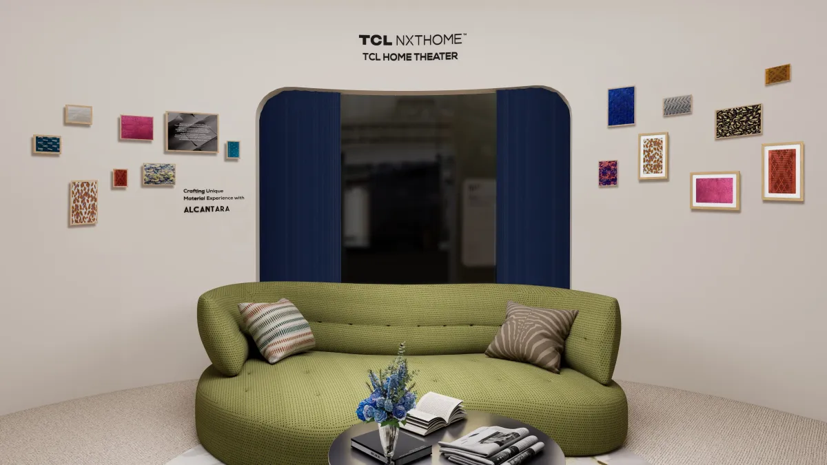 ALCANTARAは、メイド・イン・イタリーの高品質マテリアルとして名高く、TCLとのコラボレーションにより新しい次元の体験を実現しました。IFA 2025では、TCLのNXTHOME™ゾーン内に特別展示が設置され、その中でALCANTARAの魅力的なマテリアルが活用されたシネマティックな空間が展開されました。