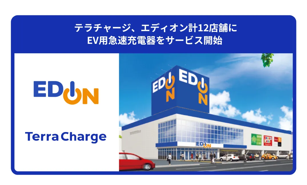 エディオンは家電量販店として持続可能な社会の実現に向けて環境負荷の低減を推進しており、テラチャージの充電サービスはその一環として導入されました。エディオンの店舗で充電可能なエリアが増えることで、EVを日常的に利用する人々にとって利便性が高まります。