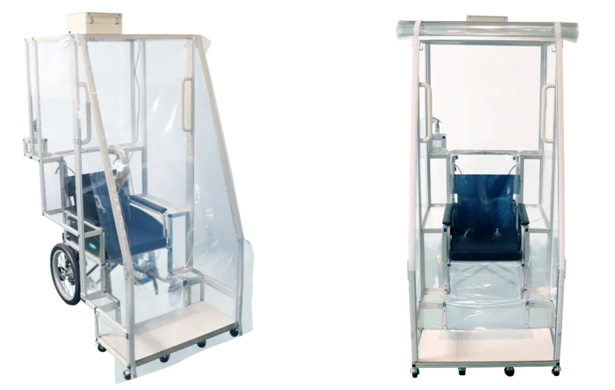 新型コロナウイルスが世界中で猛威を振るった2020年代初頭、株式会社エーディエフは、横浜市と共同で新しい車椅子用アイソレーター(陰圧ブース)の開発に着手しました。その結果、2025年には特許を取得し、医療現場における安全性向上に寄与する製品が完成しました。