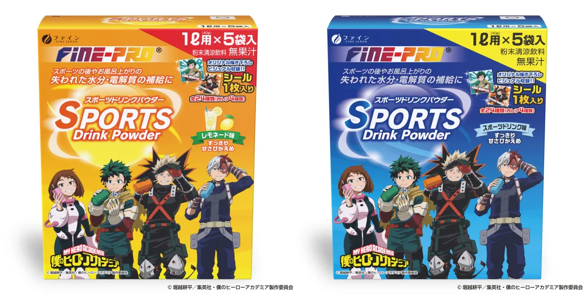 株式会社ファインが2025年4月1日から展開する「スポーツドリンクパウダー」は、人気アニメ『僕のヒーローアカデミア』との特別コラボレーションを行っています。本コラボ企画では、2025年8月31日までの期間中にファイン公式ECサイトまたは各ECモールでこの商品を購入した方の中から、抽選で200名様にアクリルスタンドが当たります。キャラクターは、緑谷出久や爆豪勝己、麗日お茶子、轟焦凍と、ファンにはたまらないラインナップです。