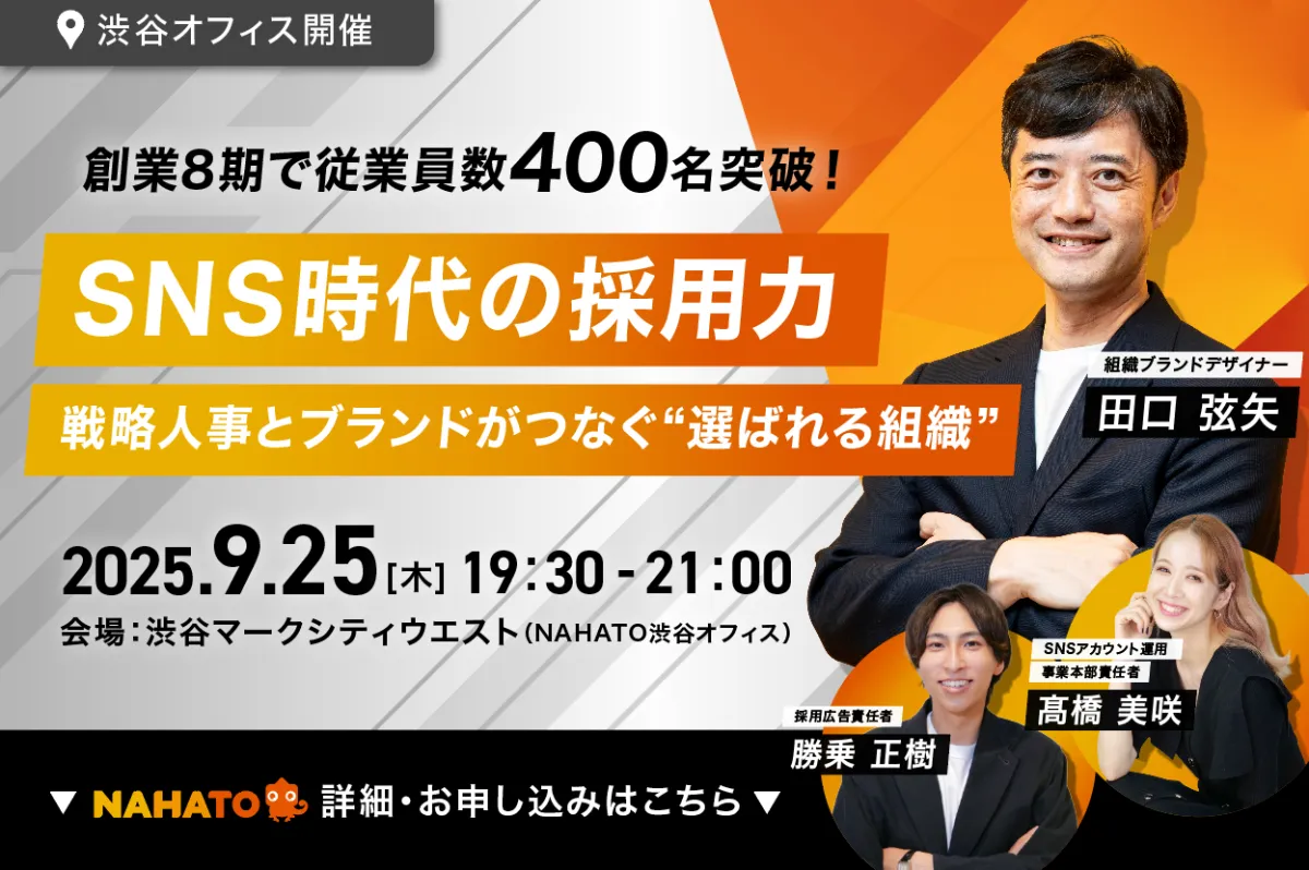 2025年9月25日、東京都渋谷区に本社を構える株式会社ナハトが主催のオフラインイベント『SNS時代の採用力戦略人事とブランドがつなぐ“選ばれる組織”』が開催されます。このイベントは、急速に変化する採用市場において、企業が「選ばれる存在」となるための戦略を考える貴重な機会です。