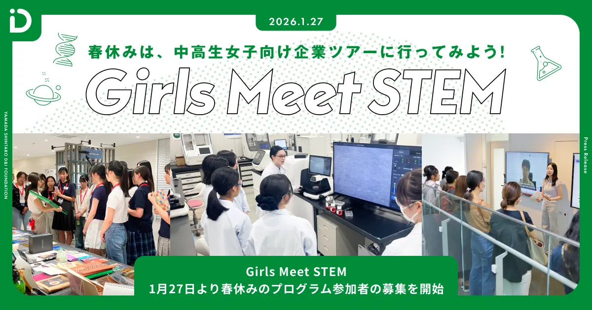 公益財団法人山田進太郎D&I財団は、中高生女子向けのSTEM(理系)領域をテーマにした体験プログラム「Girls Meet STEM」の2026年春ツアー参加者の募集をスタートしました。ツアーは2026年3月下旬から4月にかけて行われ、IT、建設、モビリティ、インフラといったさまざまな社会基盤を築く現場を探索する41のツアーが企画されています。参加希望者は、2026年2月25日(水)が応募の締切日となっています。