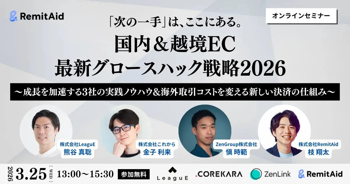 2026年3月25日(水)13時から、株式会社LeaguEが主催する無料オンラインセミナーが開催されます。このセミナーでは、国内ECおよび越境ECの成長戦略をテーマに、業界の第一線で活躍する企業の実践的なノウハウが披露されます。参加費は無料となっており、興味のある方はZoomを通じて参加できます。