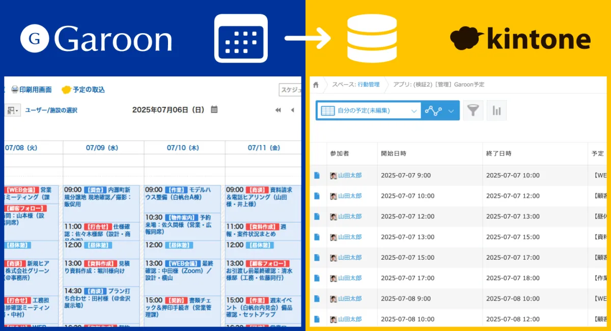「ガルキン予定一括取込プラグイン」は、Garoonで管理しているスケジュール情報をkintoneに移行し、各社員の行動をデータとして活用することを目的としています。このプラグインを使うことで、工数や稼働状況、さらには行動傾向を可視化することができ、経営層や管理者が迅速に業務判断を行えるようサポートします。