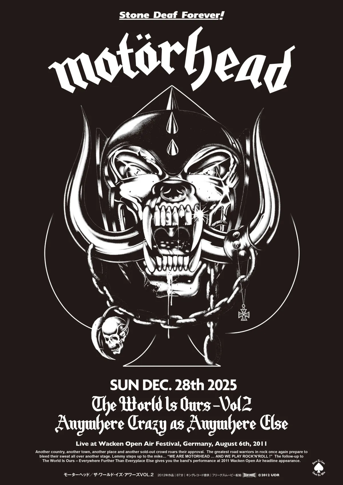 今年も、モーターヘッドのフロントマン、レミー・キルミスターを偲ぶ特別なイベントがやってきます。2015年12月28日にこの世を去ったレミーが今年で没後10年を迎えることを記念し、シネマート新宿において映画『モーターヘッド/ザ・ワールド・イズ・アワーズ VOL.2』の1日限定上映が行われます。