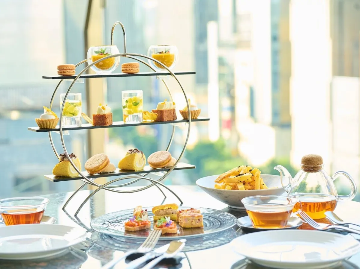 このアフタヌーンティーは、夏にぴったりのフルーツをたっぷり使用したスイーツで構成されています。見た目も華やかな全8品のスイーツには、マンゴープリンやパッションフルーツのバターサンドクッキーなど、目を引く美味しさが詰まっています。さらに、セイボリーとして、黒トリュフのフレンチフライやサーモンのカナッペといった塩味がアクセントの4品も加わります。これらの食材がつくり出す調和により、夏バテ気味の身体を癒してくれることでしょう。