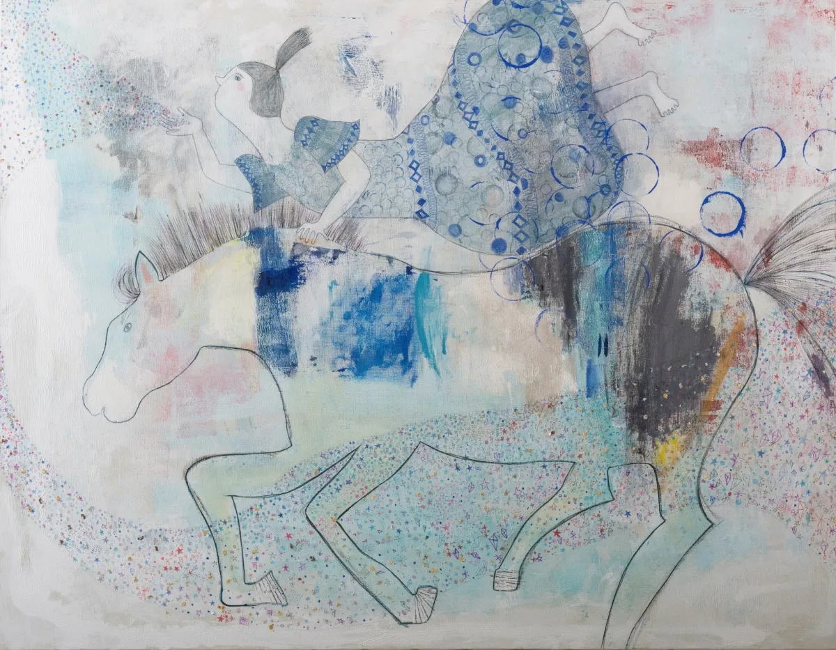 本展では、蟹江の独自の視点による作品群が展示されます。新作の中には、「循環する記憶」や「みつあみ」といったタイトルの絵画があり、それぞれアクリルやキャンバスを用いて2025年に制作されたものです。彼女の作品は、星のような優しい足音を刻む筆致と、太陽のような暖かい色彩で描かれ、すべての生命に対して光を注ぎます。