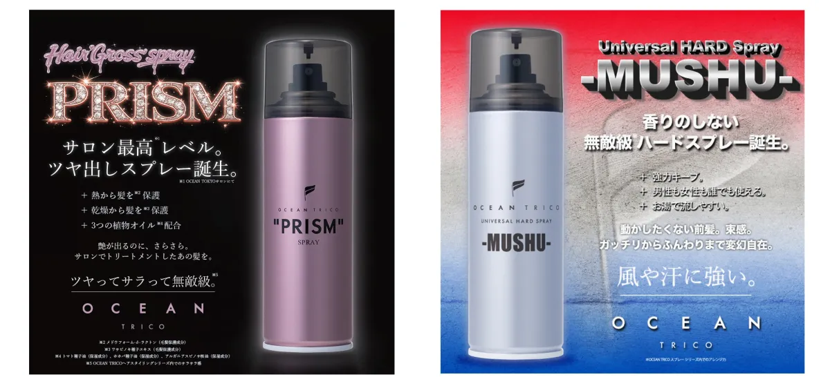 もう一つの新作は「オーシャントリコ ヘアスプレー ユニバーサルハード 無香料」です。このスプレーは、しっかりとしたスタイルを保ちながらも、香りがないため、シーンを選ばずに使用できます。ビジネスシーンや学校など、香りに気を使いたい場面で特に重宝しそうです。また、ふんわりからハードなキープ力まで、幅広いスタイリングに対応できるのが特徴です。