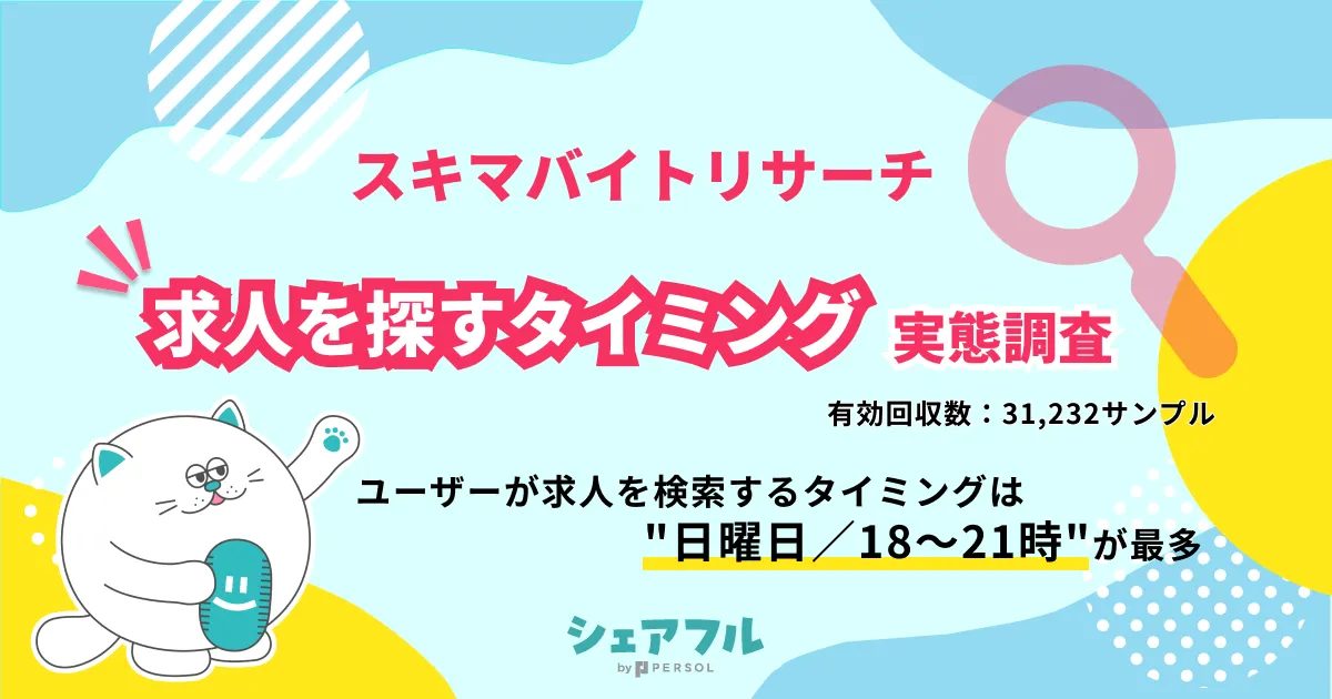 近年、多様化する働き方のニーズに応じて、短期や単発の就業が注目されています。この背景を受け、パーソルグループが提供するスキマバイトアプリ『シェアフル』は、自社のユーザーを対象に求人を探すタイミングに関する実態調査を実施しました。