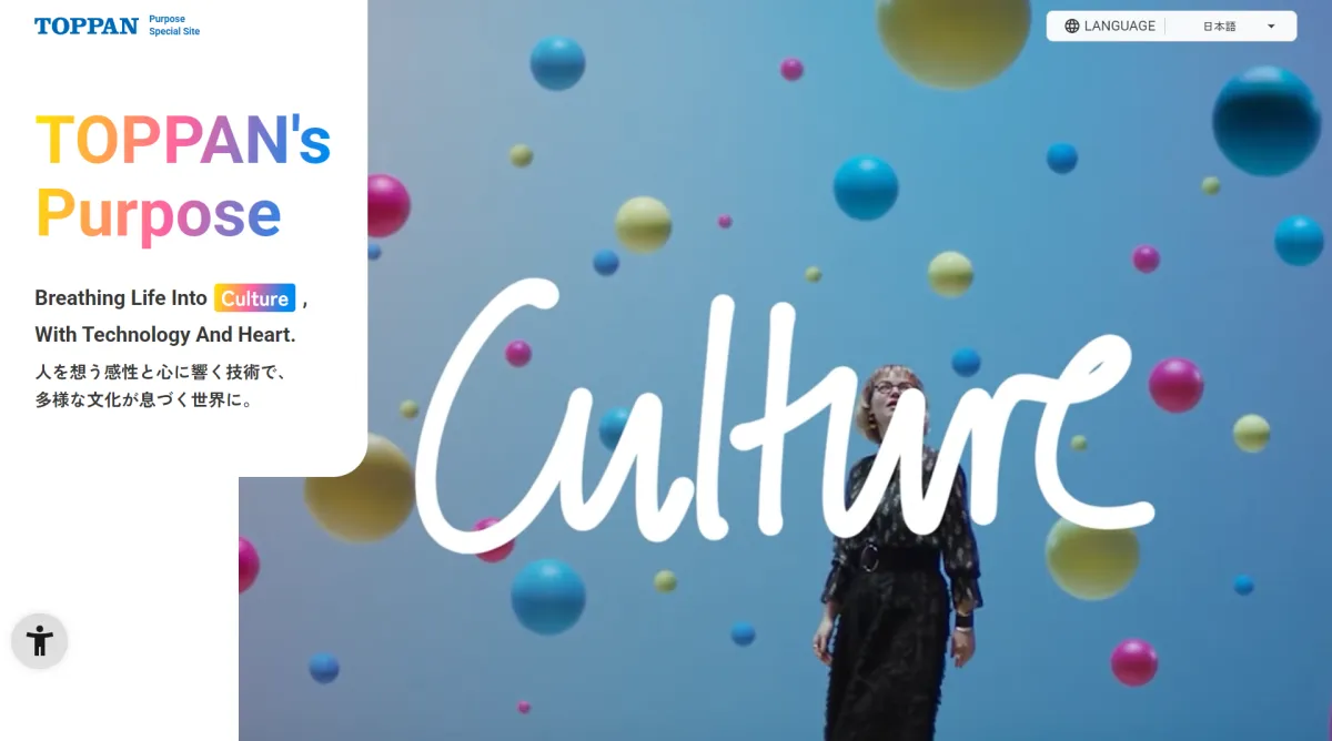 リニューアルされた「TOPPAN’s Purpose Special Site」は、TOPPANが世界中で創り上げる文化について深く知るためのオンラインプラットフォームとして位置付けられています。興味のある方は、以下のリンクからアクセス可能です。