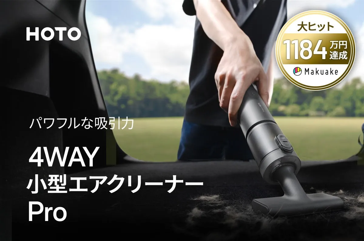 株式会社セキドが日本総代理店を務めるHOTOの「4WAY小型エアクリーナー Pro」が、2026年1月13日(火)から一般販売を開始します。特筆すべきは、この製品がクラウドファンディングプラットフォーム「Makuake」で、なんと1,184万円という驚異の支援額を集め、目標額を5924%達成したことです。多くのユーザーからの支持を受けて、ついに待望の発売を迎えることとなりました。