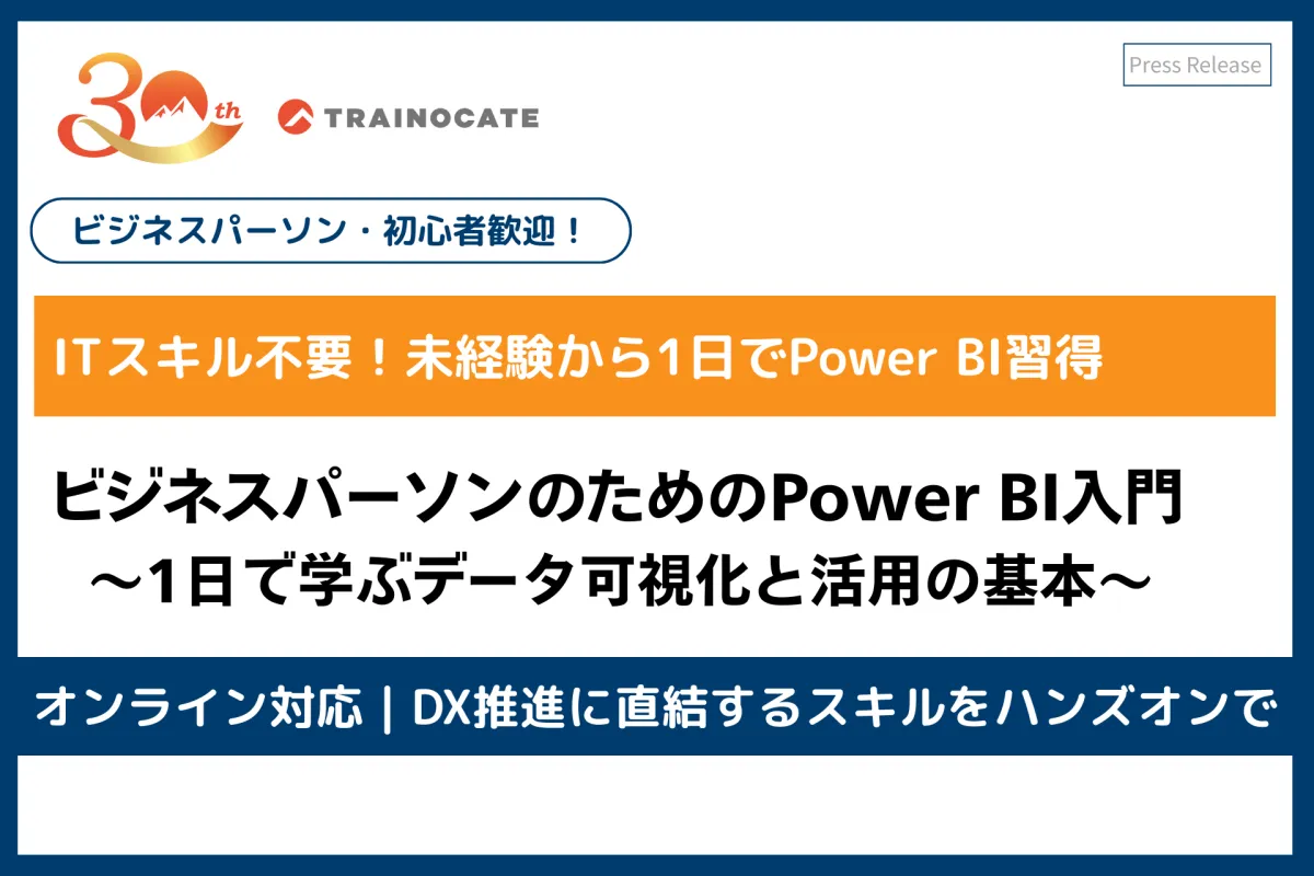 トレノケート株式会社(本社:東京都新宿区)は、ビジネスパーソン向けの新たな研修コース「ビジネスパーソンのためのPower BI入門 ~1日で学ぶデータ可視化と活用の基本~」を発表しました。このコースでは、Microsoft Power BIを活用し、データの取り込み、整形、可視化、分析、そして共有までを包括的に学習できる内容となっています。特に、これまでデータ分析の経験がない方でも安心して受講できるよう、基本的なPC操作ができるだけで参加可能です。