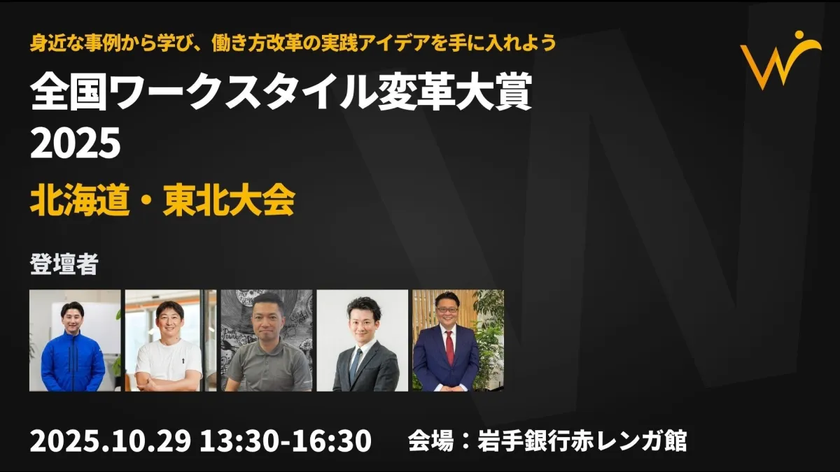 2025年10月29日、岩手県盛岡市の岩手銀行赤レンガ館で「全国ワークスタイル変革大賞2025 北海道・東北大会」が開催されます。このイベントは、地域の企業が抱える人手不足や事業承継といった課題にフォーカスし、実際の働き方改革の取り組みを紹介するものです。