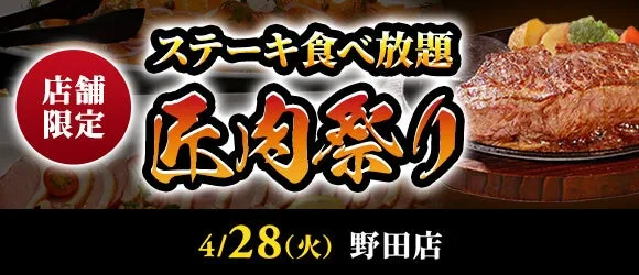 千葉県野田市に位置する「ステーキのあさくま野田店」では、2026年4月28日(火)に極上のステーキを楽しむことができる「匠肉祭り」を開催します。このイベントでは、厚切りサーロインステーキをメインに、様々な肉料理が食べ放題で提供されます。焼きたてのまま、熟練のスタッフが各テーブルにお届けし、そのあまりの美味しさに感動すること間違いなしです。