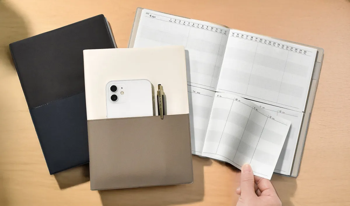 uKaRuは、手帳ユーザーが抱える「月間と週間を行き来する手間」と「持ち運びやすさ」という二つの悩みを同時に解決するために開発されました。手帳は機能が多いほど分厚くなり、薄さを追求すると機能が制限されるというジレンマがあります。これを打破したのが、uKaRuのセパレート構造です。
