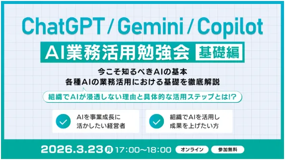 2026年3月23日(月)、株式会社クロス・オペレーショングループが主催する『AI業務活用勉強会【基礎編】』がオンラインで開催されます。この勉強会は、生成AIを利用した業務の効率化やビジネス活用を目指す方々に向けて設計されています。特に、ChatGPTなどの生成AIに興味があるが、活用方法が分からないという経営者や管理職の方々に最適です。