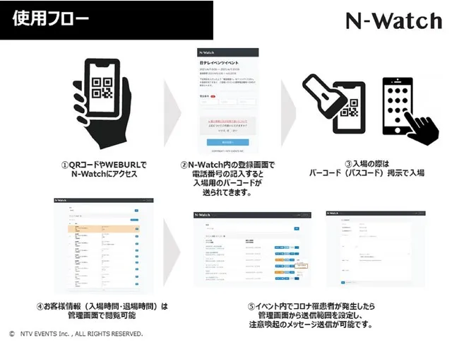 新型コロナウイルスの影響により、イベントや商業施設での来場者管理が求められています。そこで登場したのが、株式会社日テレイベンツが提供する「N-Watch」という来場者管理システムです。このサービスでは、お客様がバーコードやパスコードを提示するだけで来場日時の記録ができるため、手間いらずで安心して利用することができます。