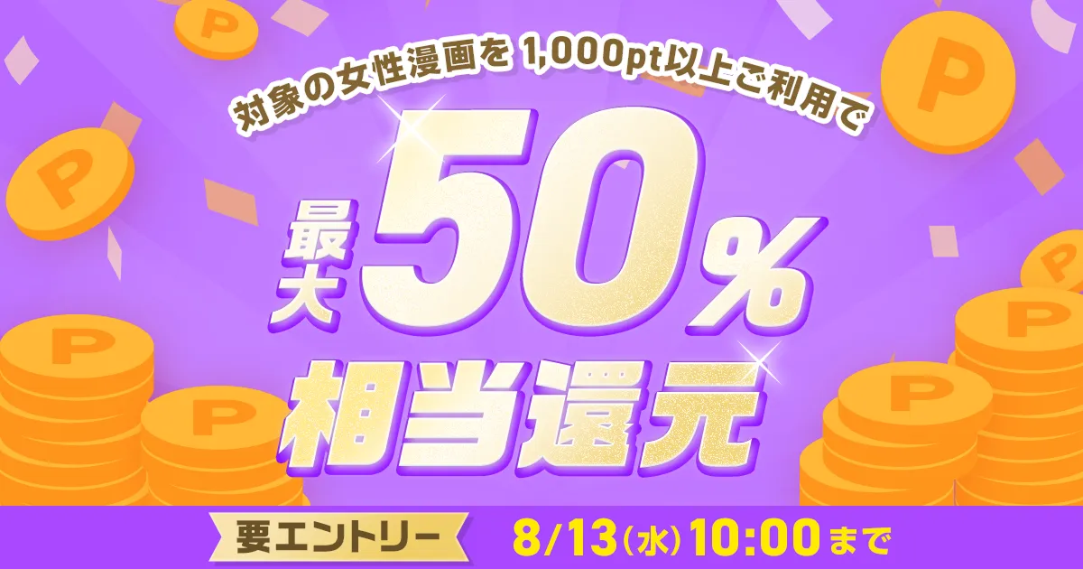 株式会社アムタスが運営する電子コミック配信サービス「めちゃコミック(以下、めちゃコミ)」が、2025年8月12日から8月13日の間、特別なキャンペーンを実施します。このキャンペーンでは、人気の女性漫画100作品が対象となり、購入金額に応じて最大50%のポイントが還元されるお得なチャンスが訪れます。