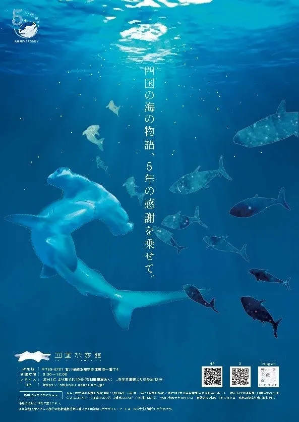 また、今回のプロジェクトの一環として、5周年を記念したロゴも完成しました。このロゴは、広報用ポスターや記念グッズ、各種制作物に使用される予定です。学生たちによる独自の視点を反映させたデザインは、四国水族館の新たな一面を感じさせてくれます。