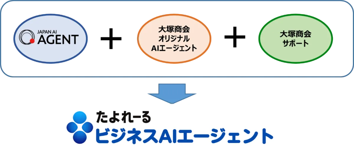 大塚商会は、中堅・中小企業向けに特化した『たよれーる ビジネスAIエージェント』を提供することで、こうした課題を解決しようとしています。本サービスは、JAPAN AI株式会社の技術をベースにしながらも、大塚商会独自のサポートやエージェント機能をプラスしています。