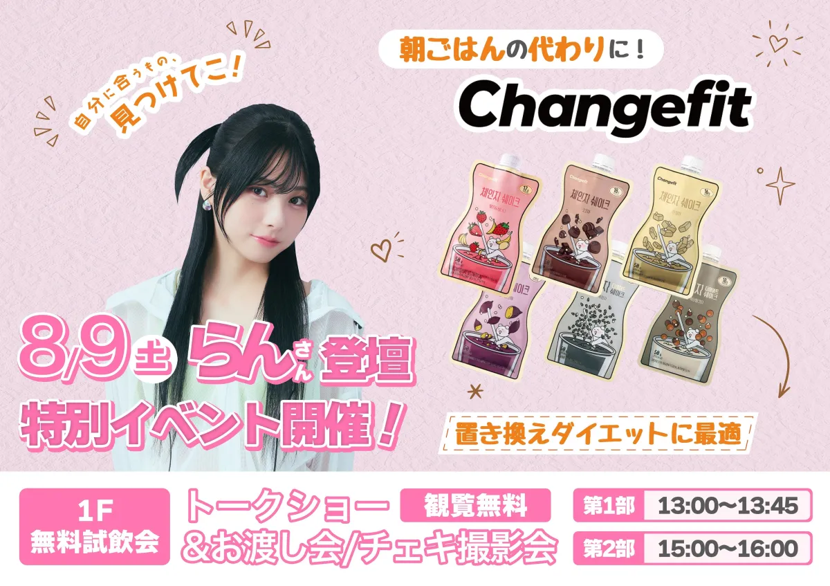 人気の置き換えダイエットシェイク「チェンジフィット(Changefit)」の販売が、2025年8月1日から全国のドン・キホーテで始まります。この販売開始を記念して、8月9日(土)にドン・キホーテ横浜西口店で特別イベントが開催されることが決定しました!このイベントでは、韓国のインフルエンサー・らんさんが登場し、トークショーと特典会を行います。さらに、1階の店頭では「チェンジフィット」の無料試飲もお楽しみいただけます。
