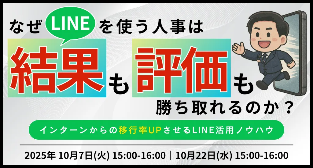 LINEを通じて学生とのエンゲージメントを高めたい企業には、ぜひこのセミナーをおすすめします。インターンから本採用への移行率を改善し、企業の採用活動を成功へ導くための貴重な情報を得るチャンスです。