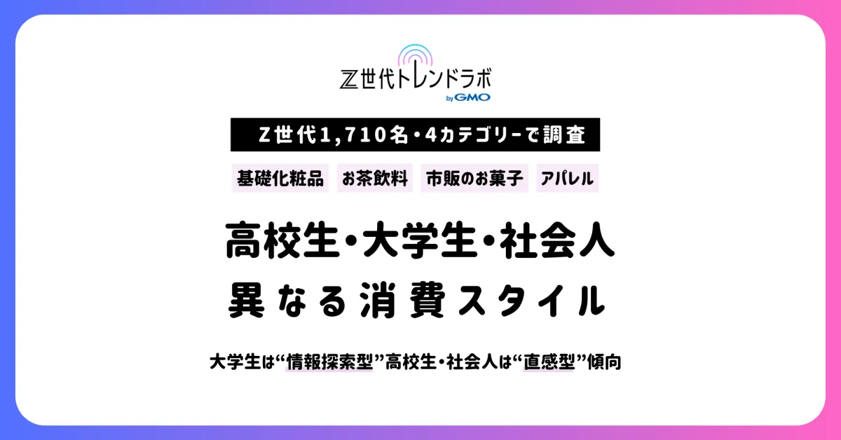 最近、GMO NIKKO株式会社が実施した大規模な調査により、Z世代の消費行動に意外な傾向が明らかになりました。この調査では、1,710名の高校生、大学生、社会人を対象に、基礎化粧品、ペットボトルお茶飲料、市販のお菓子、アパレルという4つのカテゴリーで消費行動の違いを探りました。