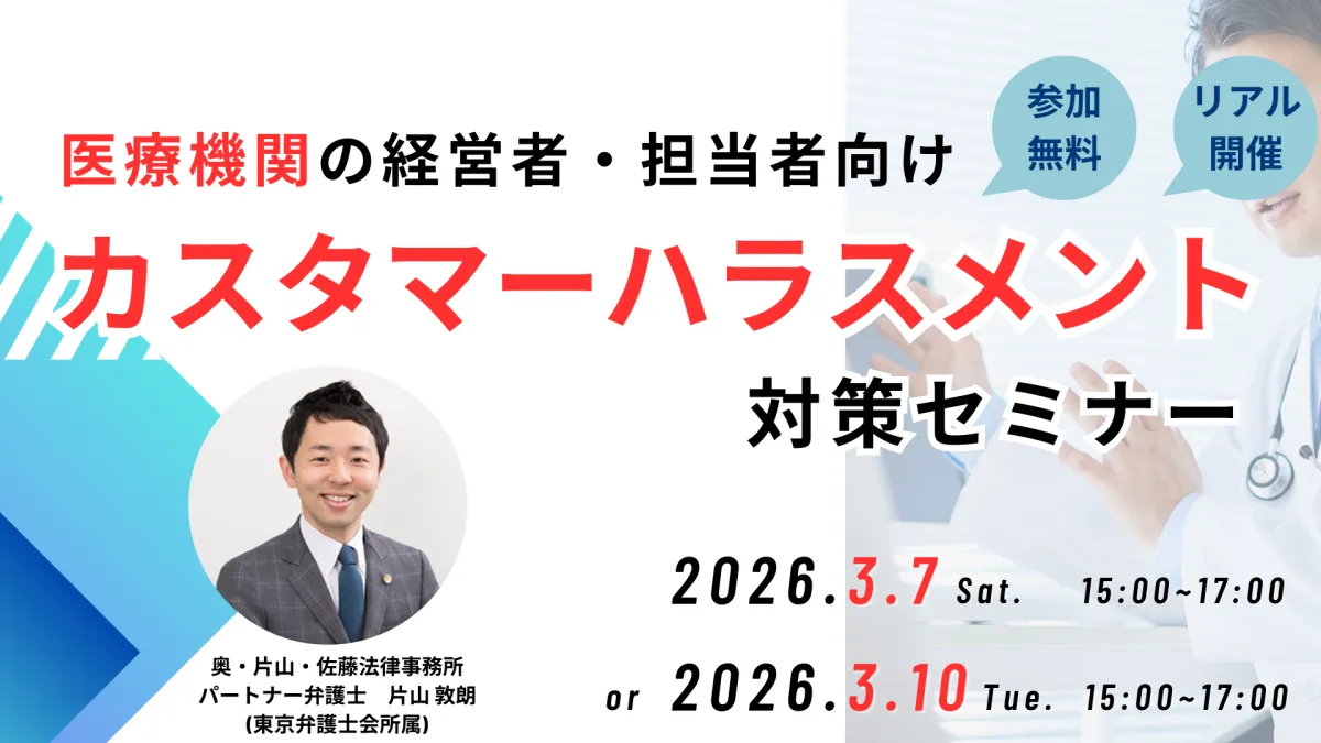 医療機関の運営者や従事者にとって、カスタマーハラスメント(通称:カスハラ)は無視できない問題となっています。そのため、医療機関に特化した法律事務所である奥・片山・佐藤法律事務所が、「医療機関向けカスタマーハラスメント対策セミナー」を無料で開催することが決定しました。このセミナーはリアルに行われ、参加者は現場での実践的な知識を得ることができます。