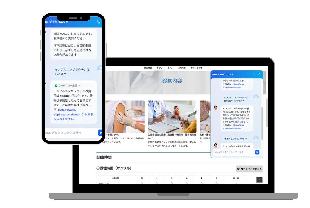 「患者AI Bot」は、クリニックの業務を全面的にサポートするために設計されたクラウド型AIソリューションです。具体的には、診療時間や予約方法に関する問い合わせをAIが24時間365日自動で対応し、電話に出られない時間帯でも患者の疑問に応えることが可能です。この機能により、クリニックのスタッフは繰り返しの問い合わせに煩わされることなく、本来の医療業務や患者サポートに集中できるようになります。
