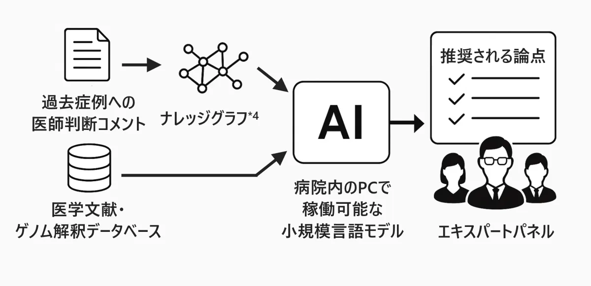がん遺伝子医療において、EPは重要な役割を果たしています。ここでは、腫瘍内科医や遺伝子診断医など、複数の専門医が集まり、患者の遺伝子検査結果を基に治療方針やさらなる検査の必要性について議論を行います。しかし、EPの開催には多くの事前準備が必要で、場合によっては最大1~2時間の時間がかかることもあります。この作業の煩雑さが医師の負担を増加させているため、改善が急務でした。