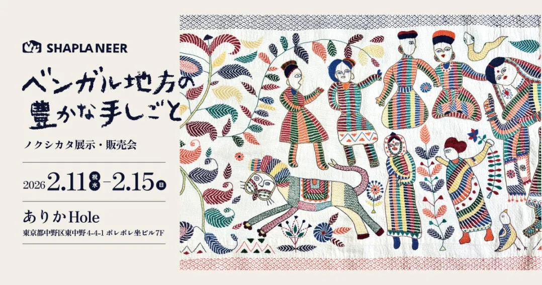 2026年2月11日から15日まで、東京都・東中野のありかHoleにて、NPO法人シャプラニールによる「ノクシカタ展示・販売会」が行われます。今回のイベントは、ベンガル地方に伝わる伝統刺しゅう「ノクシカタ」に焦点を当て、多彩な展示と販売が行われる予定です。