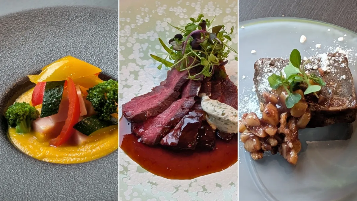 溝口シェフが考案した特別メニューは、前菜・メイン・デザートの3つの皿で構成され、フランス産のワインやシャンパーニュと共に味わえます。具体的には、以下の3品が準備されており、それぞれが独自の魅力を持っています。