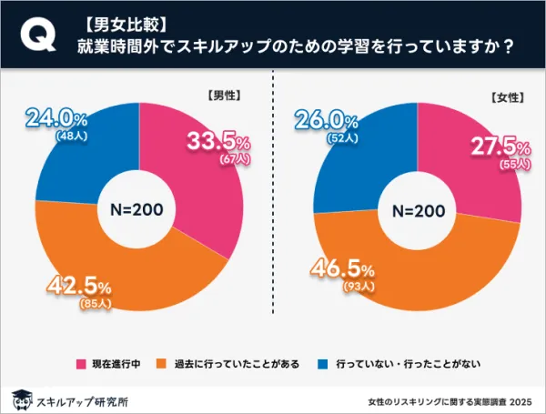本調査は、20代以上の社会人を対象に全国的に実施され、インターネットを使って行われました。対象者は男女各200人で、調査期間は2025年4月28日から5月5日までです。リスキリングへの取り組みは重要ですが、女性特有の課題が依然として存在しています。
