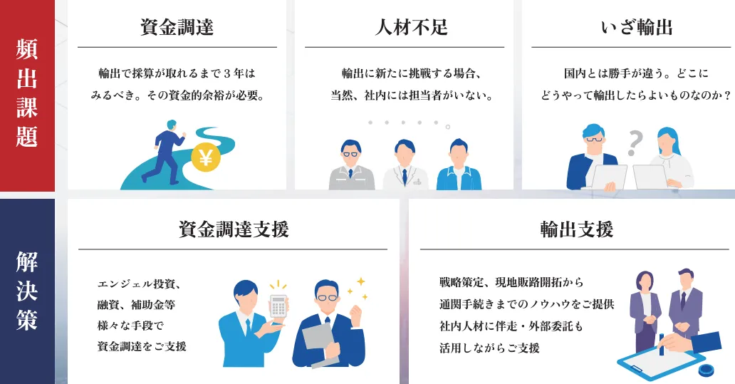 Revitalizeは、こうした課題を克服するため、海外でのビジネスに精通したビジネスプロデューサーを集めて輸出支援サービスを開始しました。彼らは、さまざまな業種や製品に対して、初期の相談から販路開拓、さらには事業拡大までを支援します。