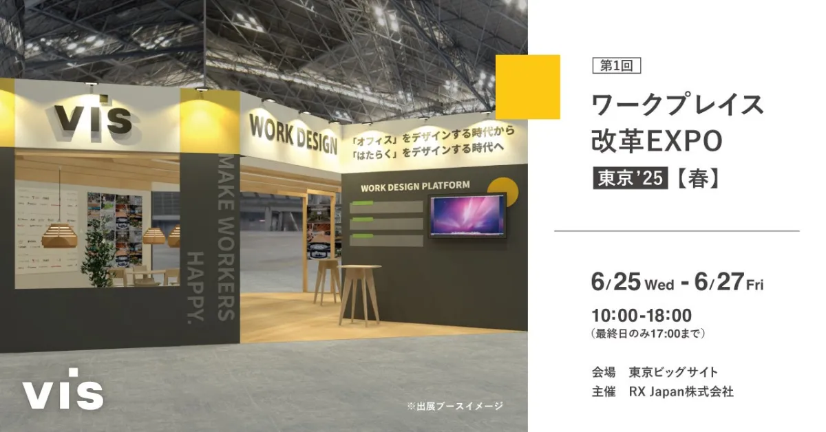 2025年6月25日から27日の間、東京ビッグサイトで開催される「第1回 ワークプレイス改革EXPO[春]」に株式会社ヴィスが出展します。今回のイベントは、働きやすい環境やオフィスのデザイン、リモートワークの促進などに特化した専門展で、多様化する働き方へのニーズに応えるための新しいソリューションが一堂に会する場となります。