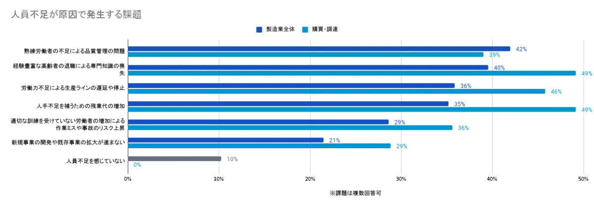 少子高齢化が進行する中、2024年には製造業の労働者数が9万人減少し、業界の9割が人員不足を感じています。この苦境は、生産性の低下や企業の生存を脅かす要因となっています。また、長年にわたり日本の製造業を支えてきた熟練技術者の引退が進み、86.5%の企業が技術継承に課題を抱えているというデータもあります。
