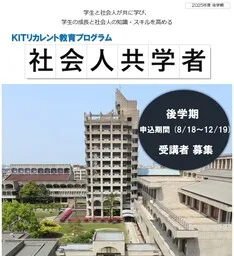 金沢工業大学では、2025年度後学期にあたる2025年9月26日から2026年1月28日までの期間、企業や自治体に勤務する社会人を対象にした「社会人共学者」制度が開始されます。この制度は、社会人が大学の授業に参加し、学生と共に学ぶことで相互に刺激を受けることを目的としており、参加は無料です。最初の受付は2025年8月18日から始まり、最終受付は12月19日まで行われます。