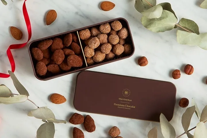 さらに、明治記念館の誇る「プレミアムショコラ」も見逃せません。このスイーツは、イタリア産のアーモンドとヘーゼルナッツの2種類のナッツを使い、香ばしさを引き立てたショコラの詰め合わせです。ナッツの香ばしさとショコラの濃厚さが絶妙に組み合わさり、一口で楽しめるリッチな体験を提供します。こちらの価格は3,240円(税込)です。