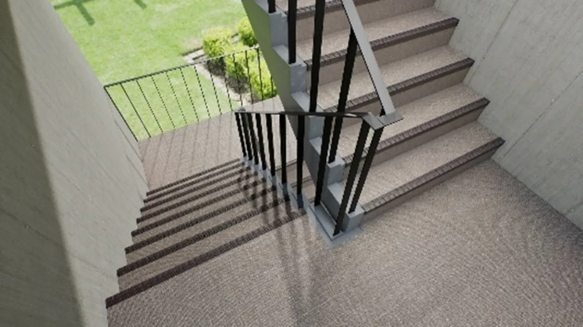 また、「タキステップHW」はすでに発売中の防滑性ビニル床シート「タキストロンハイスイカラットHK」と統一感のある柄や色展開がされています。これにより、階段だけでなく廊下や踊り場とのコーディネートが可能で、審美的にも満足できる空間作りが実現します。