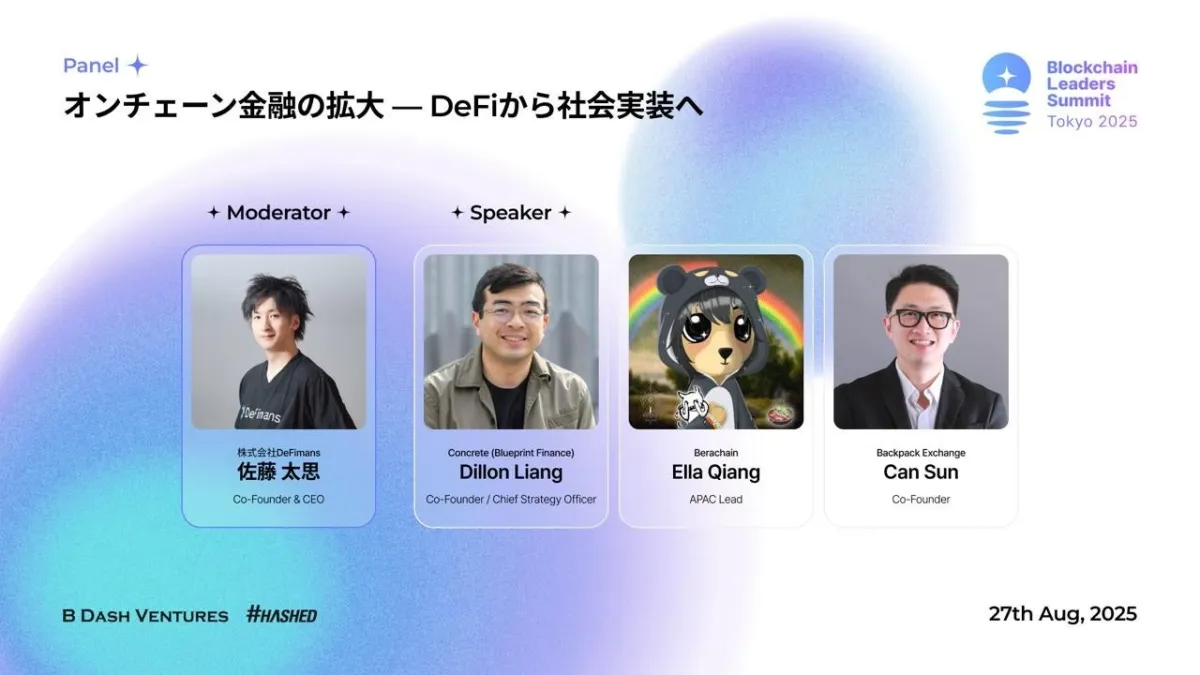 2025年8月27日、東京都内にて開催される「Blockchain Leaders Summit Tokyo 2025」において、株式会社DeFimansの代表取締役佐藤太思がパネルディスカッションのモデレーターとして登壇することが決まりました。このイベントは、日本国内はもちろん、韓国やその他の国々からもブロックチェーン業界のリーダーたちが集結する、非常に重要なカンファレンスです。