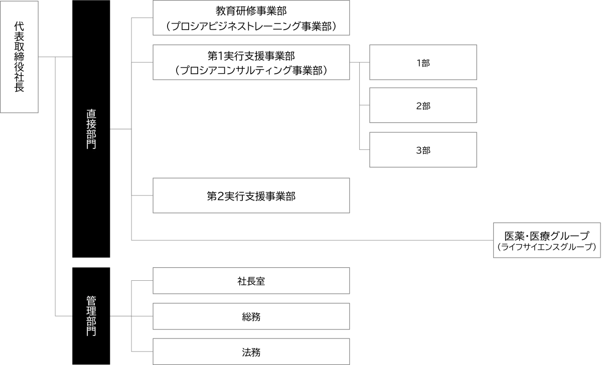 新たに設けられた部門は、第1実行支援事業部(プロシアコンサルティング事業部)内に位置し、各部がそれぞれの専門性を持って業務を推進します。これにより、当社はさらに効率的かつ効果的なプロジェクト支援を実現することが可能になります。