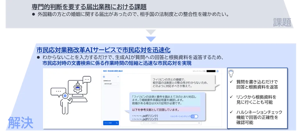 この結果、職員はより迅速な対応を求められ、また市民も待ち時間が長くなるという課題を抱えることになっています。NECと日本加除出版の連携により、これらの問題を解決する手段を模索することが期待されています。