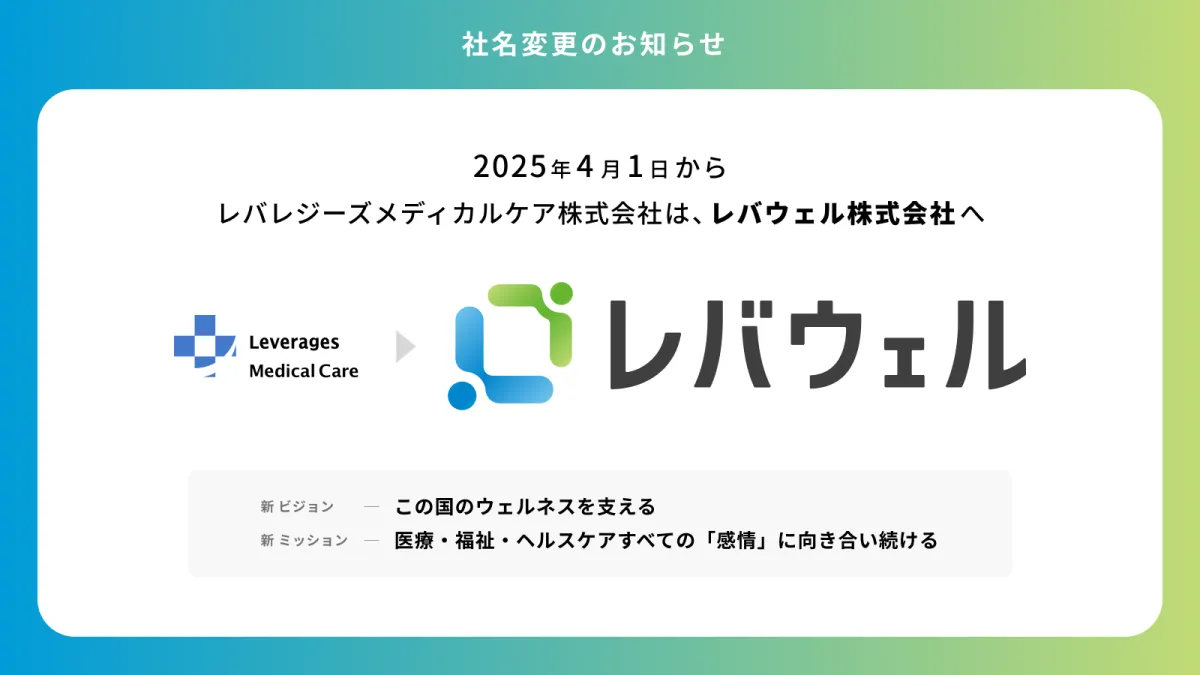 レバレジーズメディカルケア株式会社は、2025年4月1日より社名を「レバウェル株式会社」に変更することを発表しました。この変革は、医療・福祉・ヘルスケア業界に対し、より包括的なサービスを提供するための重要なステップです。新しい社名は「健康・ウェルネス(wellness)」の「ウェル」と、既存のブランド名である「レバレジーズ」から「レバ」を組み合わせた造語です。