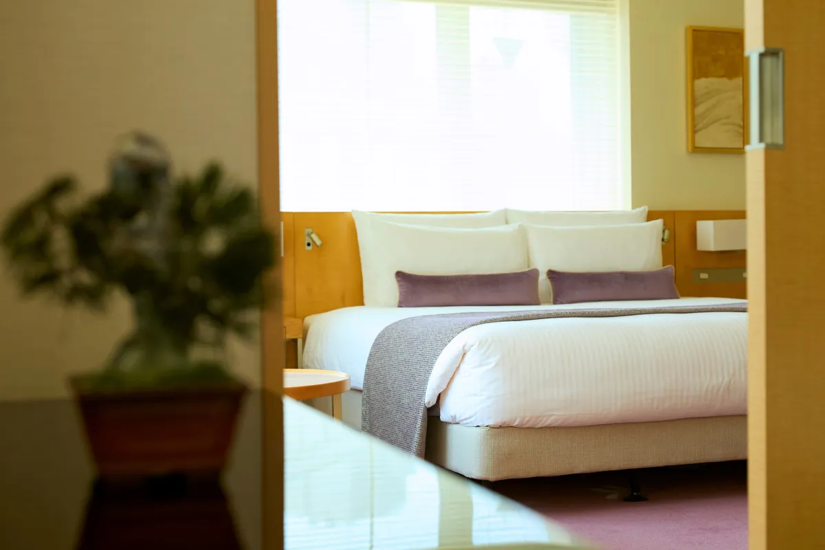 ザ・キタノホテルの客室は、快適さを最優先に設計されています。全室には、エアウィーヴのマットレスや静音性の高い構造が施されており、心地よい眠りをサポートする環境が整っています。