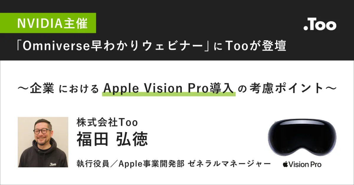 株式会社Tooが、2025年8月29日(金)14:00〜15:10に開催される、NVIDIA主催の「Omniverse早わかりウェビナー 第5回 空間コンピューティングとデジタルツイン 実践編」に登壇することが発表されました。このウェビナーでは、クリエイティブ市場における最新技術の導入と実践方法について詳しく解説されます。